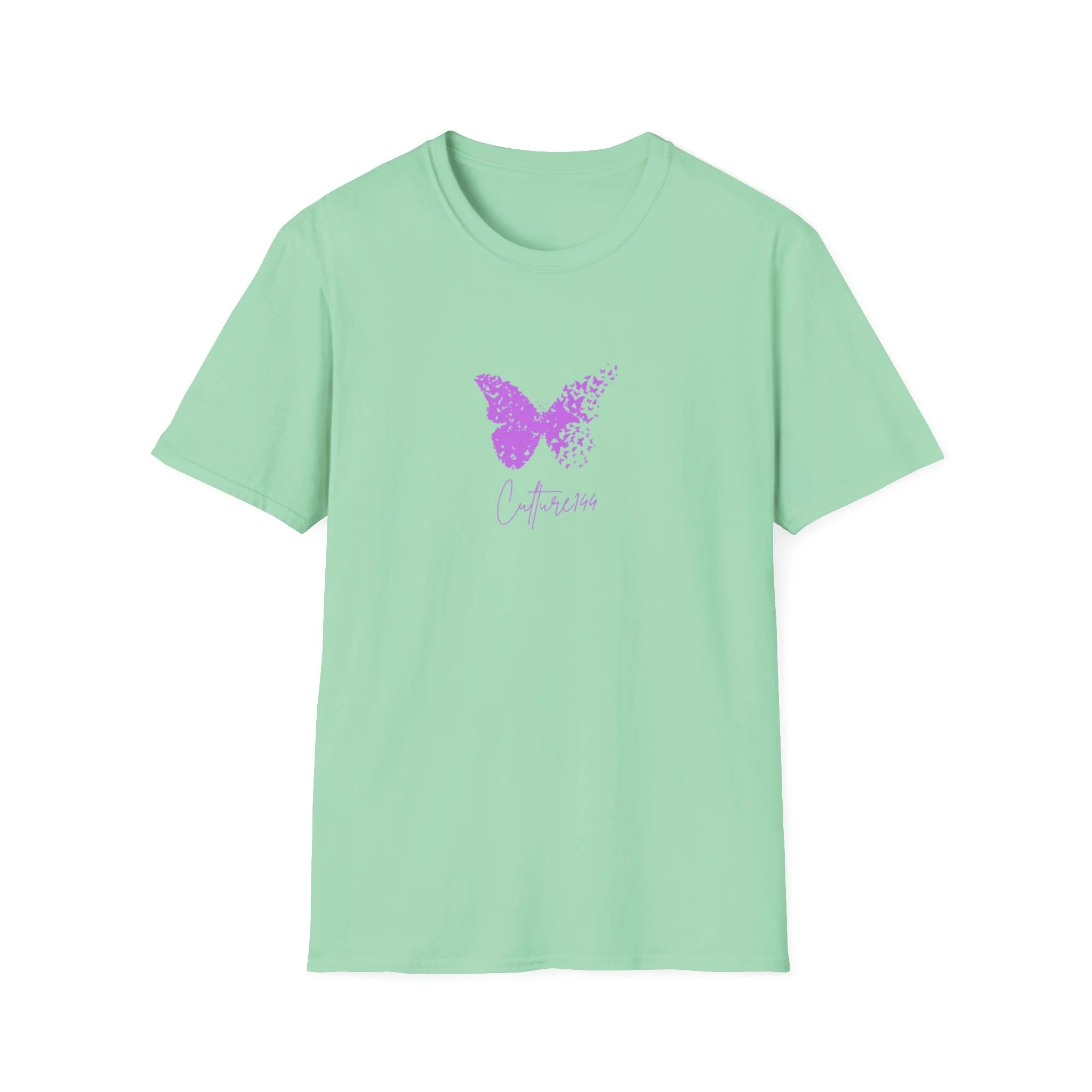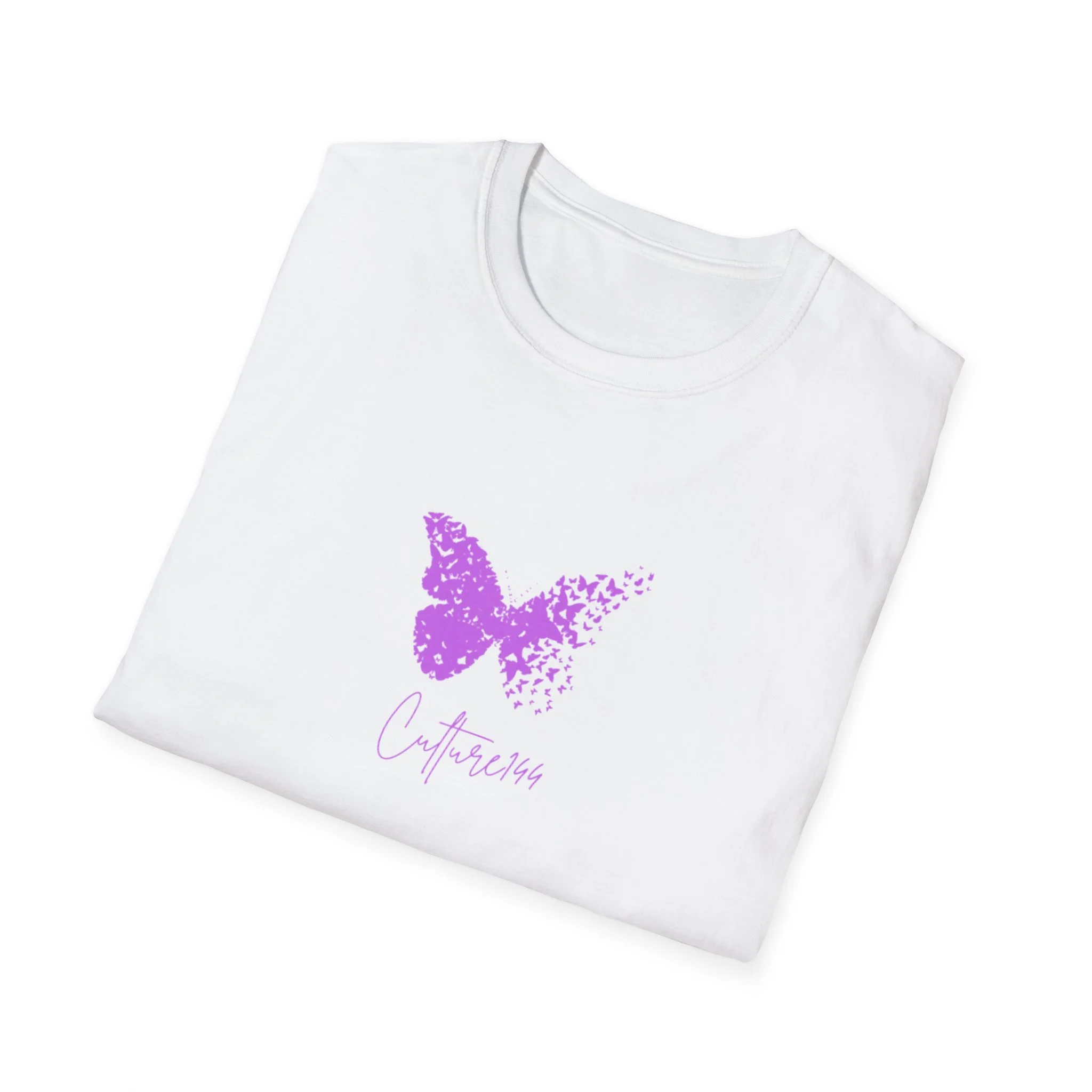 This lightweight cotton tee carries a gentle, hopeful energy — a soft white canvas with a delicate lavender butterfly that seems to scatter into tiny petals. The small, centered graphic sits near the heart, subtle yet meaningful, made to be worn close to quiet moments: morning coffee on the porch, a slow walk through town, or a low-key gathering with friends. The crew neck and classic fit keep the silhouette clean and easy to layer under jackets or over long sleeves. It feels like an everyday calm — breathable, simple, and quietly expressive for someone who prefers understated, emotive style.